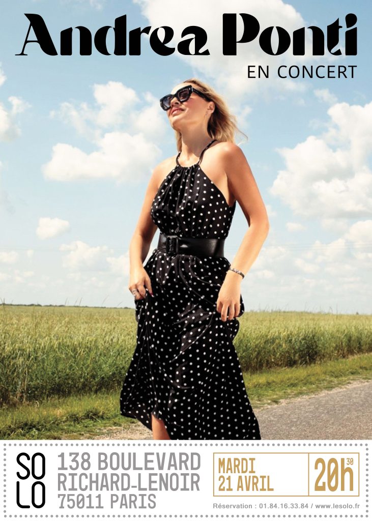 Une voix qui touche instantanément, une interprète à fleur d’émotion : Andrea Ponti revient avec « Le Solo », un concert acoustique inédit, guitare-voix, pensé comme un moment suspendu. Après avoir collaboré avec de grands auteurs-compositeurs de la scène francophone — Igit (Barbara Pravi, Eurovision) Jonathan Cagne (Héléna – Star Academy / Louane), François Welgryn, William Rousseau — et enregistré dans des studios emblématiques, Andrea dévoile ses chansons dans leur forme la plus pure : intimes, vibrantes, sans filtre. Accompagnée sur scène par le guitariste Manu Rodier (Patrick Fiori), elle propose un voyage musical où se mêlent ses titres originaux et quelques reprises revisitées avec grâce. Une formule épurée qui met en lumière la profondeur des textes, la sensibilité de la voix et la force des émotions. Un rendez-vous rare, authentique, proche du public. Un concert pour celles et ceux qui aiment la chanson française sincère et incarnée. Nombre de places limité. Le 21 avril 2026 – Une date unique. À ne pas manquer.