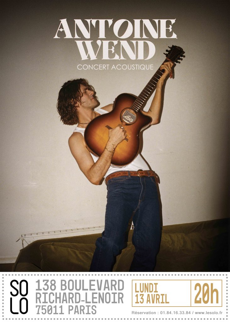 Artiste français aux influences pop, révélé par sa victoire à X Factor, Antoine Wend choisit de revenir à l’essentiel après la puissance de La Boule Noire et la tournée « Balavoine, ma bataille ».