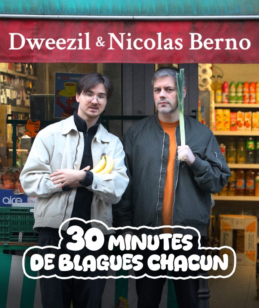 Nicolas Berno a commencé par le théâtre avant d’envahir YouTube avec Golden Moustache, Studio Bagel et bien d’autres farceurs du web. Il a aussi réalisé deux courts-métrages Papillon et Puzzle. En plus de son activité d’acteur, il fait du stand-up depuis trois ans pour parler avec absurde de ses révoltes, de sa flemme, sa procrastination, de sa jeunesse, du temps qui passe et des difficultés pour rester dans son époque sans être un boomer à peine construit. Dweezil a fait beaucoup d’études, les a presque toutes arrêtées pour devenir humoriste professionnel. Élevé par Les Nuls, les Monty Python et Friends, il commente le monde, l’actualité et tente, avec une naïveté inquiétante, de régler les problèmes de l’humanité sur scène. Un spectacle essentiel pour comprendre la géopolitique mondiale, animé par deux experts du domaine.