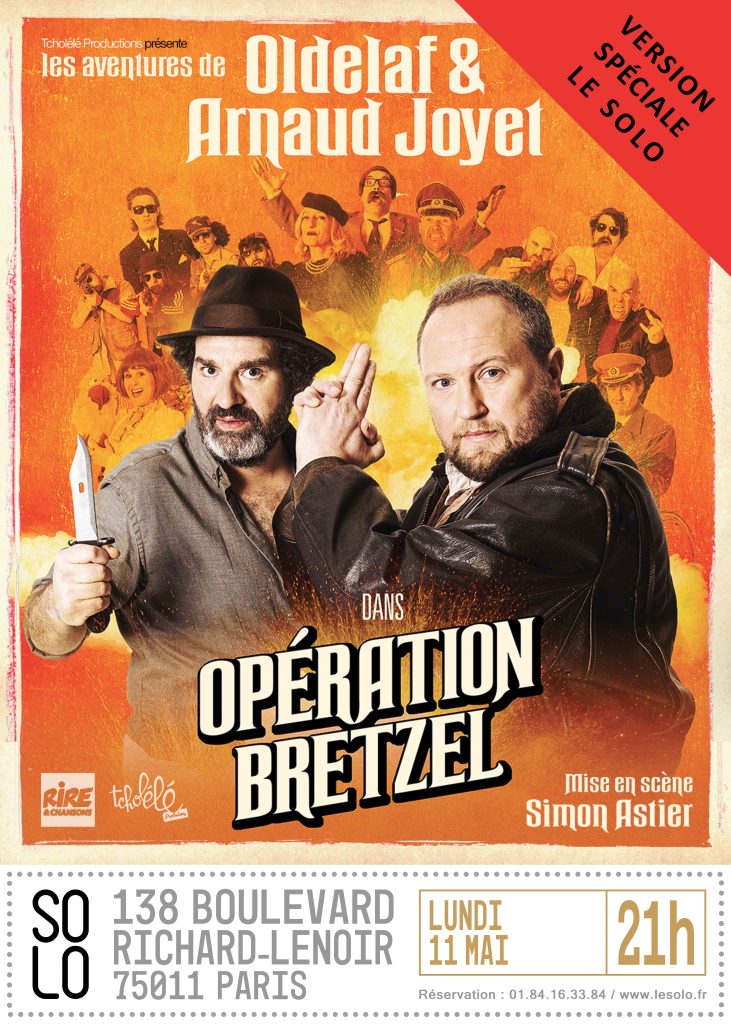 En 1993, Oldelaf et Arnaud Joyet, aujourd’hui vedettes reconnues du monde de l’intermittence, n’étaient encore que deux étudiants paumés en colocation. Ils tombent un soir à la TV sur un reportage sur Serge et Beate Klarsfeld, le couple qui a débusqué et traîné devant la justice les nazis Eichmann et Barbie, au péril de leur propre vie. C’est le déclic. Ils décident de reprendre le flambeau, même si ça brûle. Cette aventure les mènera en chanson et en bonne humeur de la bibliothèque du Perreux-sur-Marne à Bogota, en passant par la forêt de Rambouillet ou un bowling, et sertira leur amitié du sceau le plus noble : être Traqueurs de Nazis. Pour cette représentation exceptionnelle au Solo, nos deux traqueurs de nazis nous ont concoctés une version tout à fait spéciale de leur aventure.