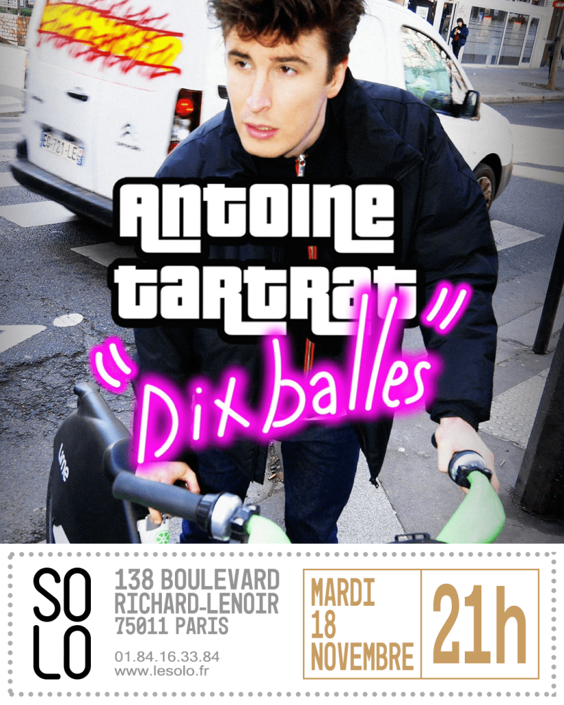 Après avoir enchainé les plateaux Parisiens, Antoine Tartrat lance son premier spectacle « Dix balles ».